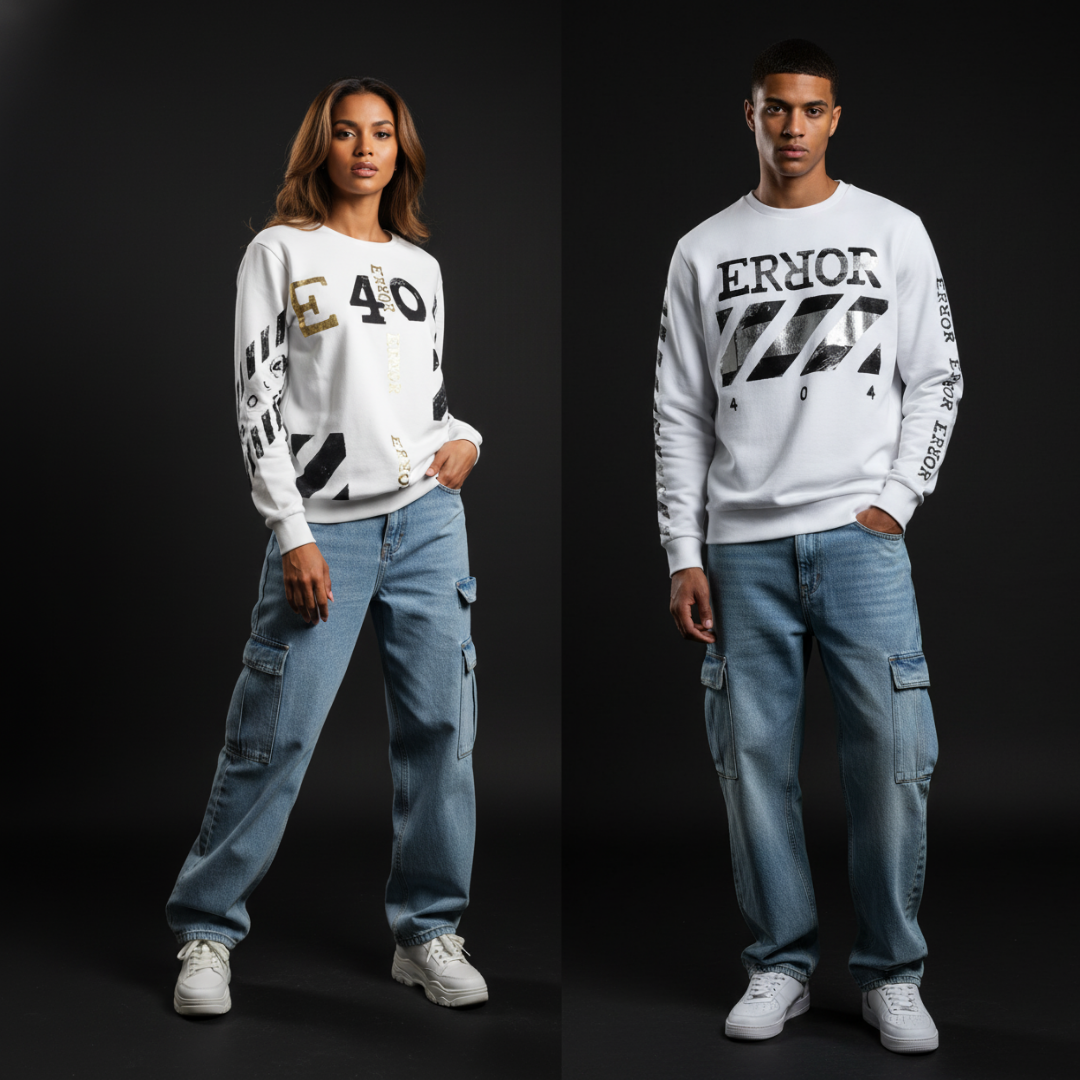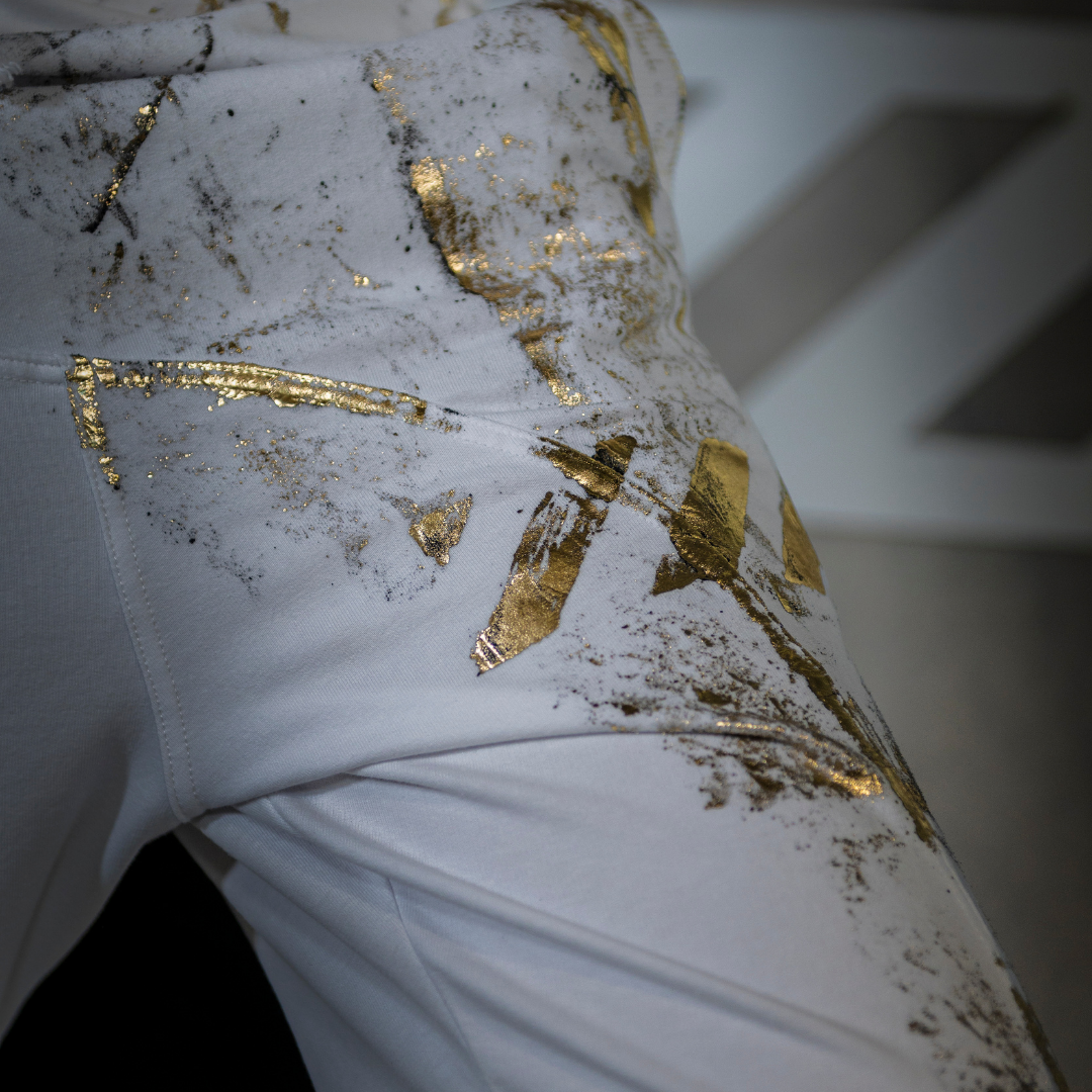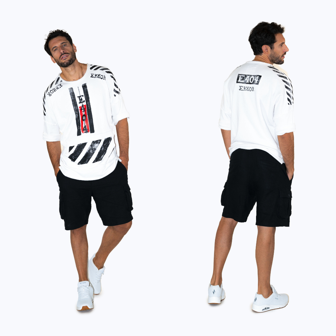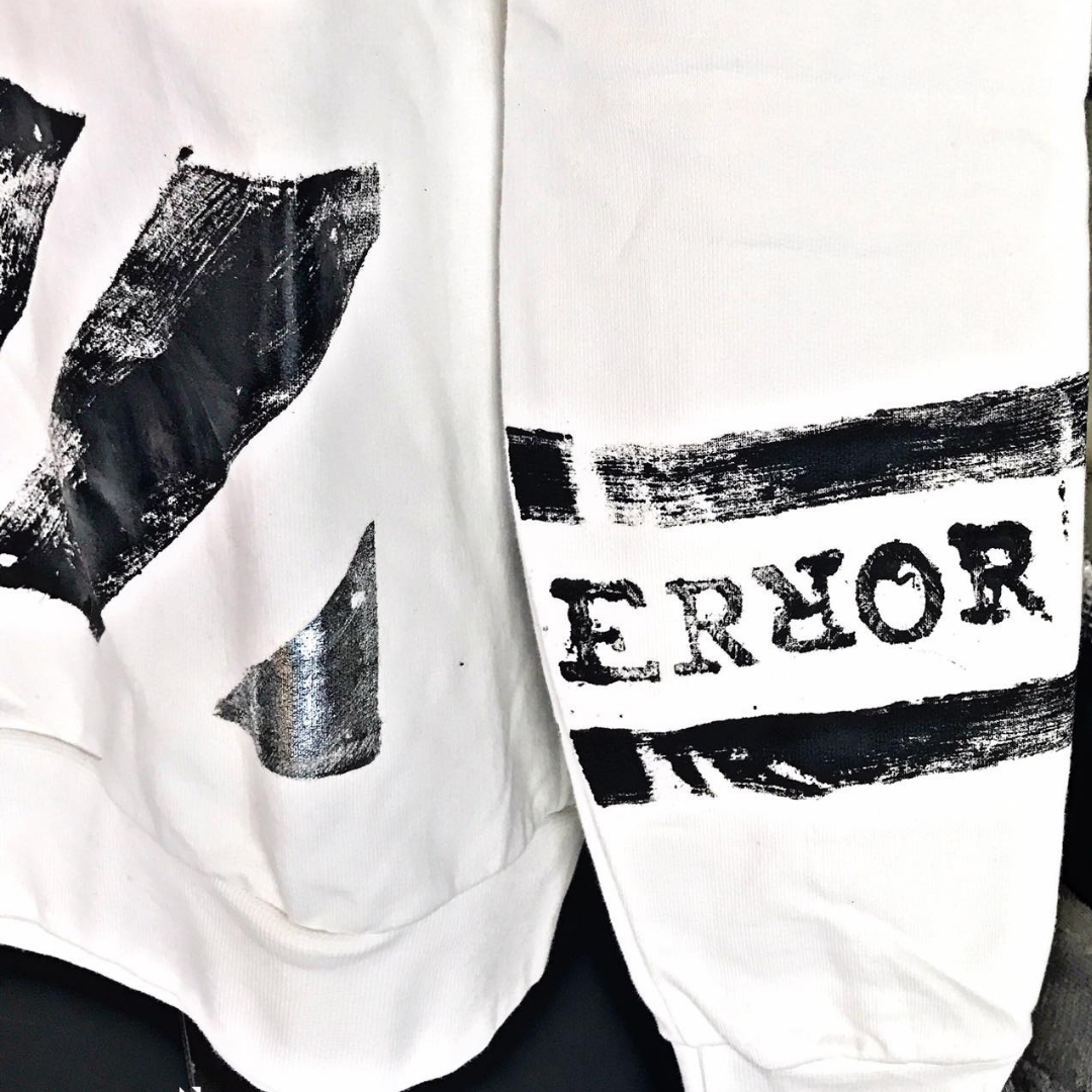 La nostra prima collezione, "ERROR", celebra proprio questo: in ogni capo, l'applicazione artistica è realizzata a mano. L'imprevisto, il flow del pennello, il tocco irripetibile: è in quel momento che l'"errore" non è un difetto, ma il valore distintivo che rende il tuo capo unico.